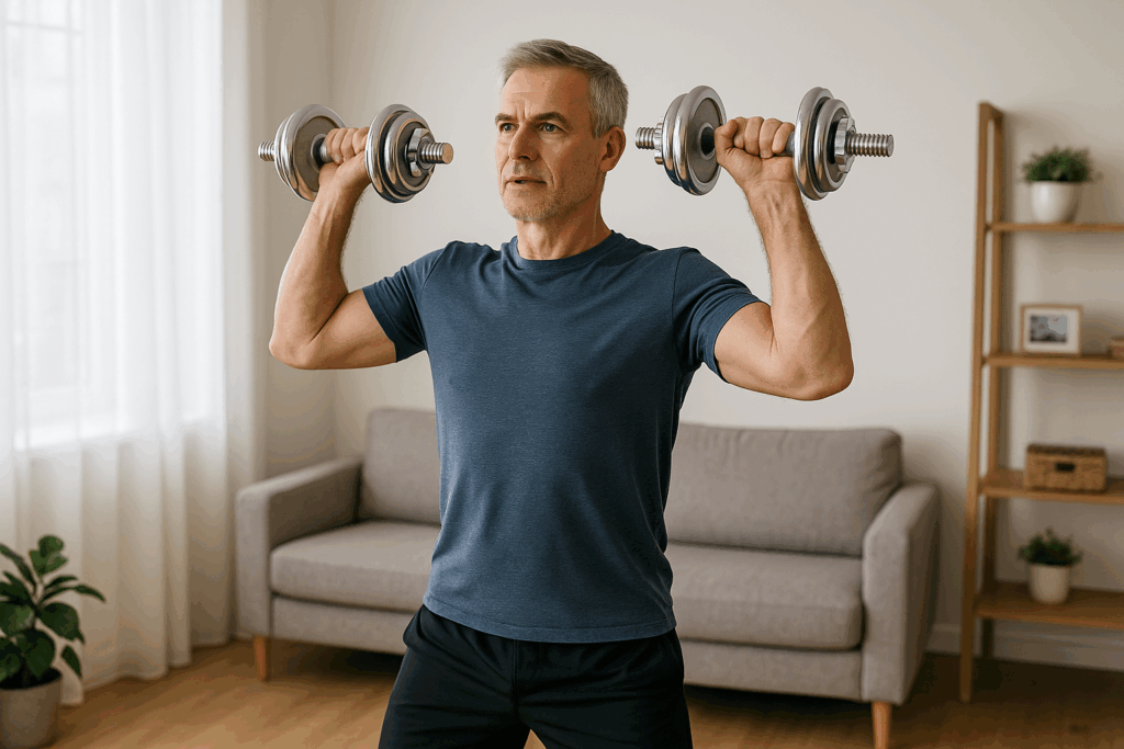 Der effektivste Trainingsplan für Männer 50+ ohne Fitnessstudio Arnold Press mit verstellbaren Kurzhanteln – zuhause trainieren ab 50. Viele Männer